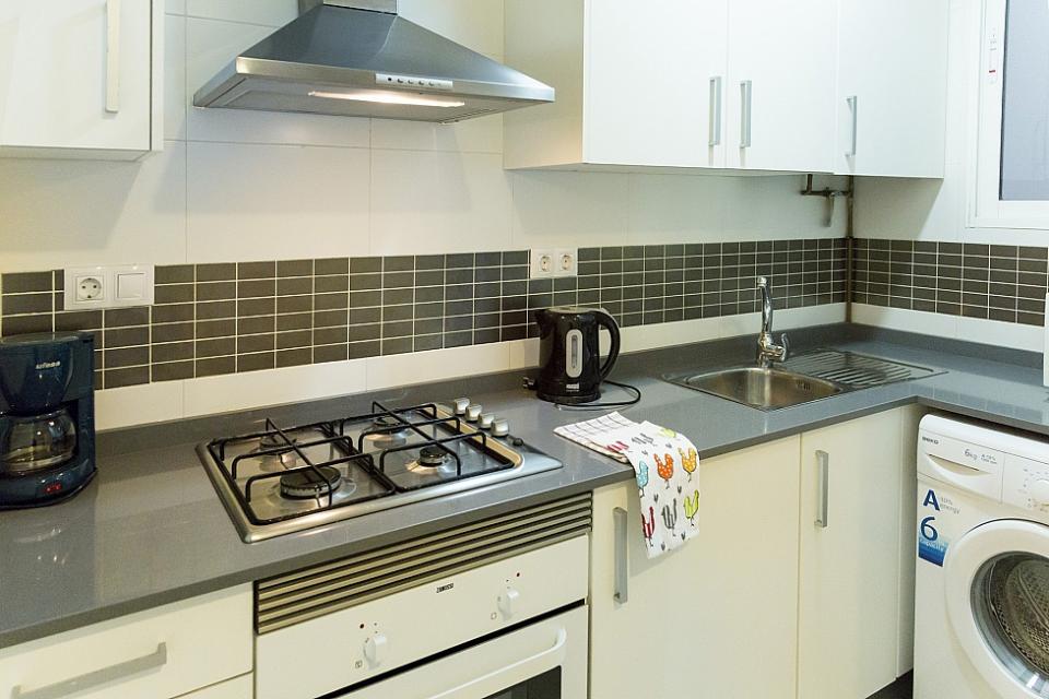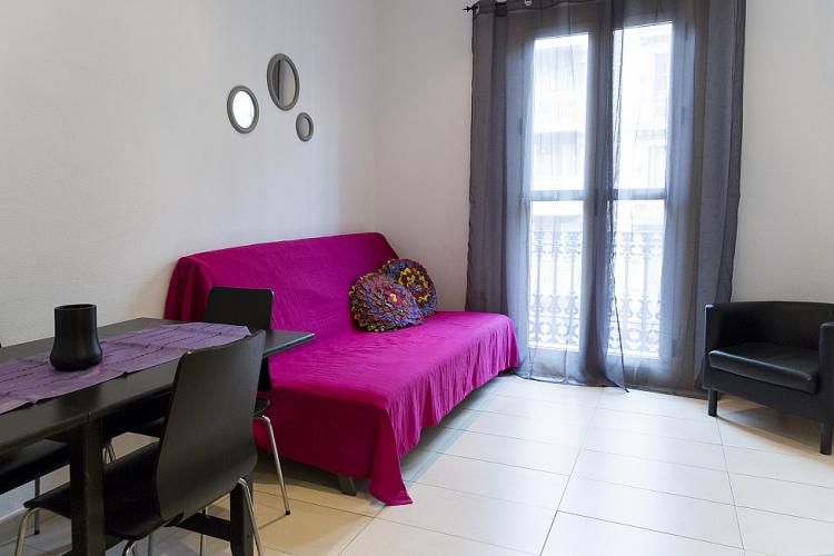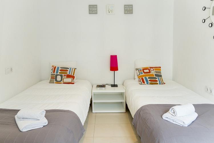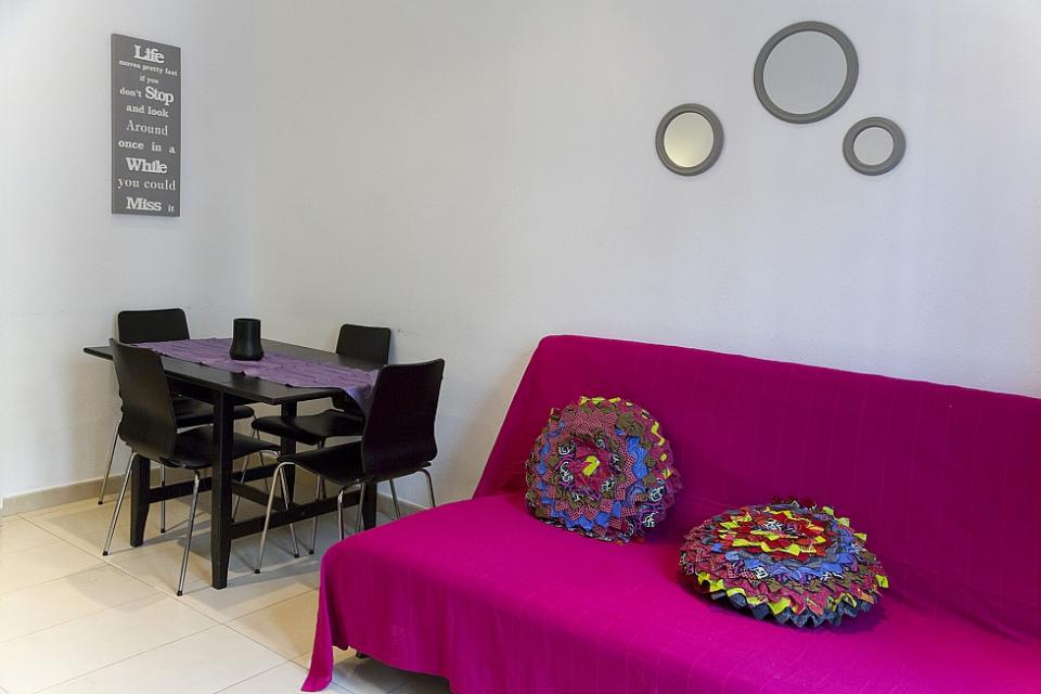 Charming apartment for holiday rental in which living room is furnished in a simple manner with a decoration in neutral tones and is very bright thanks to its access on the outside. The bedroom is of minimalist style and comes with cosy beds with vivid linen to make your stay and resting time pleasant. Other apartments of the same characteristics are available in this building, this is perfect for large groups or families who wish to be accommodated in the same place.