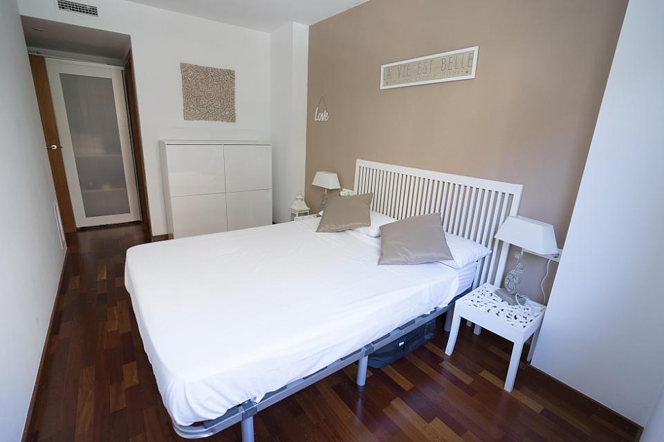 Stylish minimalistically decorated apartment in Hospitalet. Set foot in this beautiful 3-bedroom flat and find the perfect holiday home for you and your close ones. The first thing that you notice once you go in is the incredible dark maple flooring that looks simply amazing, contrasting the bright white and beige shades of the walls and furniture. The living room is spacious and incredibly comfortable. You can either enjoy a meal on the gorgeous bright wood dining table or chill out on the soft super-sized sofa while practising your Spanish with local TV shows. The kitchen, of course, is fully equipped with all necessary appliances of the highest quality, so that there is nothing you will miss during your stay. The 3 bedrooms all provide more than sufficient storage space and all get plenty natural lighting throughout the day.