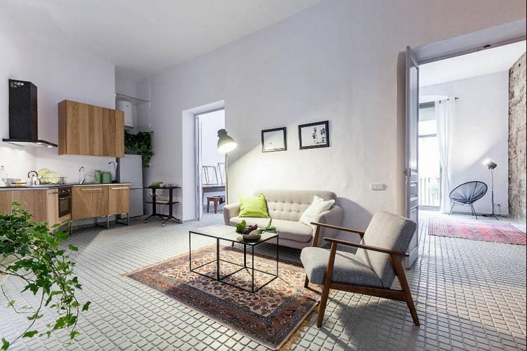 The apartment is situated in the heart of Barcelona, in one of the most picturesque areas of the city, the Gothic neighborhood. In its sinuous streets, you will find everything you might need during your stay, but also many opportunities to relax, since it hosts various bars and restaurants, local and international, with a cosmopolite atmosphere, perfect to rest after a long day.