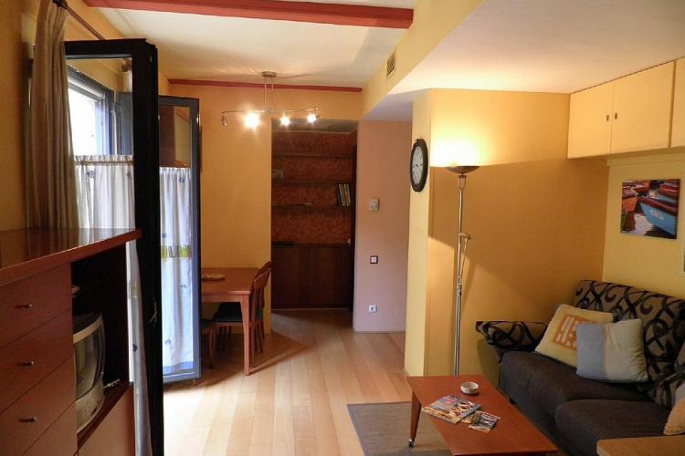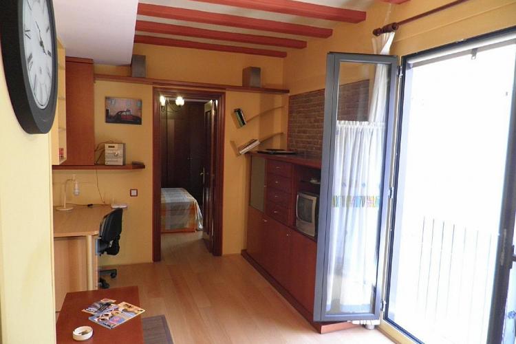 Céntrico apartamento en Born disponible para una pareja o grupo de amigos. El apartamento cuenta con un amplio salón con un cómodo sofá cama y un pequeño escritorio, un acogedor espacio comedor decorado con estilo rústico, un baño recientemente reformado, una cocina equipada con encimeras de mármol y una habitación doble con gran espacio de almacenamiento. Con acceso a tres balcones con vistas al barrio, el apartamento es soleado durante todo el día.