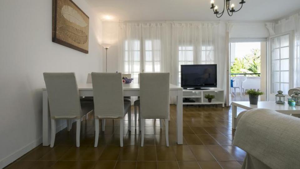 Este apartamento encantador y espacioso es perfecto para familias grandes y amigos que planean pasar las vacaciones en Sitges. Decorado con interiores modernos, el apartamento tiene un ambiente hogareño, lo que te permite adaptarte al lugar rápidamente. El salón transmite una sensación de frescura gracias a los grandes ventanales que rodean la habitación. La sala de estar también te ofrece el acceso a un balcón de gran tamaño, lo que te permite tener vistas de los hermosos alrededores. El apartamento se compone de tres dormitorios, todos amueblados de forma similar con una decoración elegante y modesta. El lugar está equipado con todo aquello que puedes necesitar durante tu estancia.
