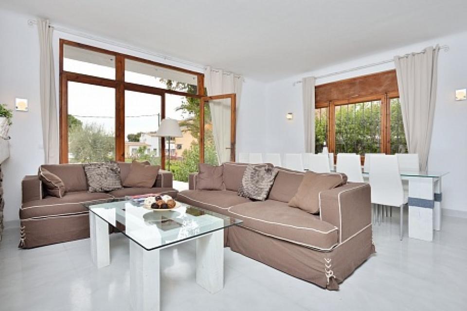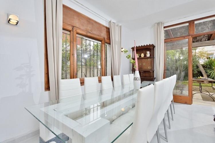 Esta amplia casa vacacional presenta varios espacios abiertos, perfectos para descansar con amigos o familiares, incluyendo un salón luminoso con un gran sofá rodeado de puertas de suelo a techo que dan acceso a un jardín y una piscina. También hallarás un rincón con una bonita mesa y bancos de madera. Disfruta de una cena más formal en el interior en la larga mesa de vidrio con 12 elegantes sillas alrededor de ella. Las habitaciones están decoradas con un acogedor estilo familiar. Una de ellas cuenta con una encantadora chimenea rústica, que nos recuerda a una casa de campo. La vivienda cuenta con baños reformados con azulejos de color beige y una gran cocina equipada para cocinar para grandes grupos.