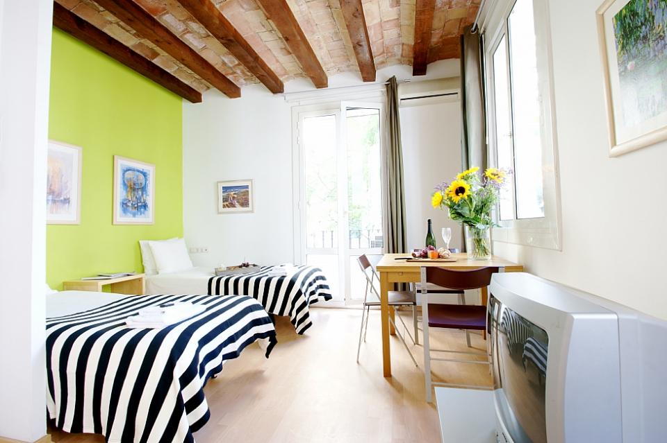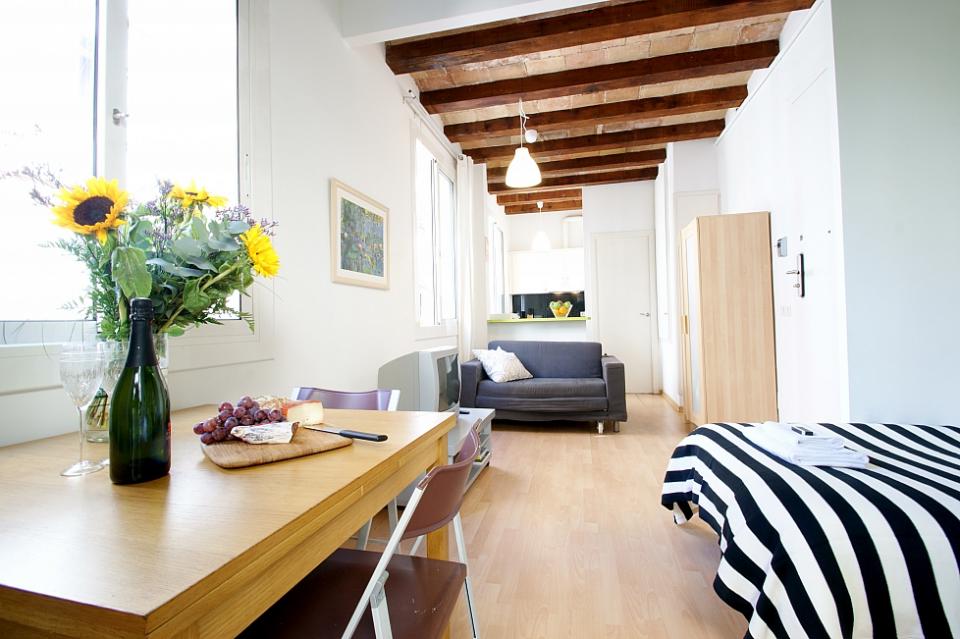Studio simple et pratique situé en bord de mer, sur la plage la plus célèbre de la ville, la Barceloneta, c'est l'option parfaite pour une escapade dans la Ciudad Condal. Il consiste en une seule pièce avec des poutres apparentes d'origine qui se marient à la perfection avec la décoration colorée et les ornements marins. La petite cuisine est entièrement équipée pour votre confort, et l'espace salon dispose d'un canapé-lit pour accueillir un éventuel invité supplémentaire.