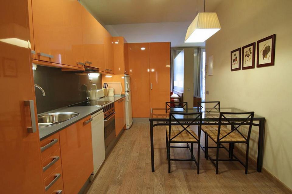 Wejście do tego prostego i ładnego apartamentu Plaza Universitat prowadzi do wspaniałej otwartej kuchni z wyjątkowymi, pomarańczowymi meblami, wyposażoną we wszystkie niezbędne narzędzia do gotowania ulubionych potraw. Naprzeciwko kuchni usytuowana jest jadalnia z drewnianą podłogą i szklanym stolikiem dla czterech osób. Dalej, wzdłuż pomieszczeń znajdziesz przestronny salon z dwoma sofami i TV, urządzony w przyjaznych, delikatnych kolorach, abyś czuł się jak w domu. Zarówno salon jak i sypialnia z dużym łóżkiem małżeńskim i drewnianą szafą, mają dostęp do balkonu z widokiem na ulicę wraz ze znajdującymi się wzdłuż niej drzewami. Jest to świetny punkt, z którego można zobaczyć centrum miasta.