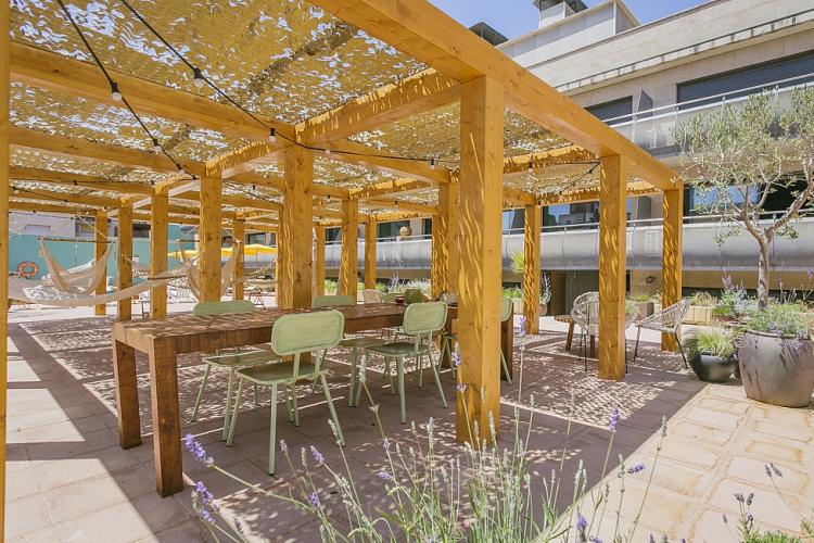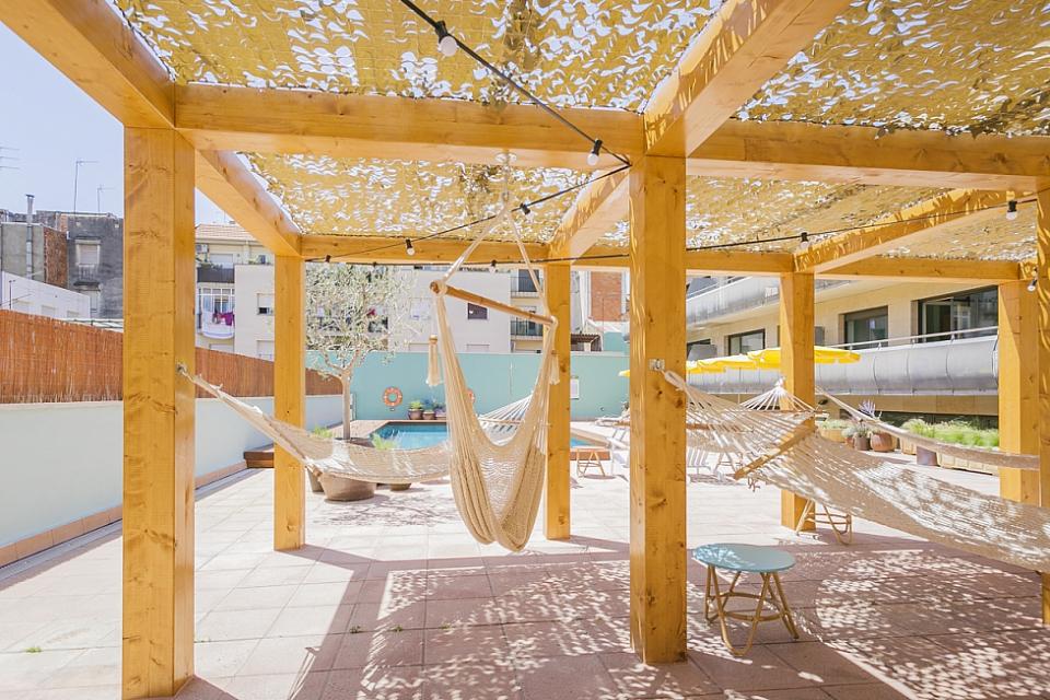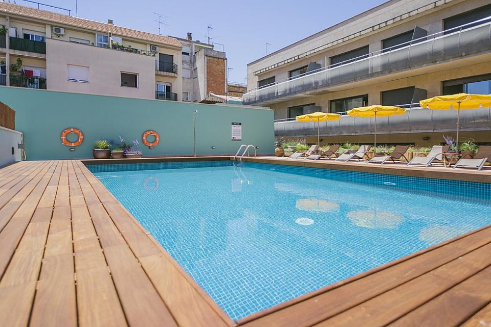 Codiciado alojamiento para una corta o larga estancia ubicado en el barrio de Sant Andreu de Barcelona, con acceso a una piscina comunitaria. El interior presenta un diseño sencillo, práctico y elegante, así como muebles seleccionados pensando en tu comodidad. En la sala de estar se encuentra un gran sofá y un sillón rojo con 2 mesitas frente a una TV, una zona de descanso perfecta para relajarse después de un largo día. Al otro lado de la sala se halla una bonita mesa de comedor justo en frente de los armarios de madera de la cocina en forma de U, la cual está totalmente equipada. El salón tiene acceso a un balcón soleado, desde cual también se puede acceder desde el dormitorio. Nos encanta la elegante mezcla de colores beige, blanco y madera de este último espacio, que cuenta con un gran armario y una cama doble, garantizándote una excelente noche. Disfruta de un tranquilo baño de burbujas y una sesión de spa en el baño, reformado con azulejos blancos brillantes