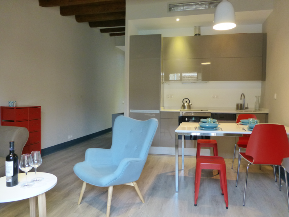 We spent a whole month here and enjoyed every minute. It's located in the best part of Barcelona, surrounded by tapas bars and restaurants, you cannot ge bored here. The apartment itself has very modern and pretty furniture and is very cozy and clean.